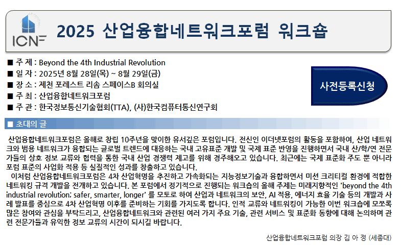 2025 »ê¾÷À¶Çճׯ®¿öÅ©Æ÷·³ ÇÏ°è ¿öÅ©¼ó(2025.8.28(¸ñ)~29(±Ý), Á¦Ãµ Æ÷·¹½ºÆ® ¸®¼Ø ½ºÆäÀ̽ºB ȸÀǽÇ)