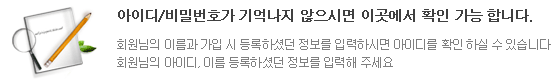 ȸ¿ø´ÔÀÇ À̸§°ú °¡ÀÔ ½Ã µî·ÏÇϼ̴ø Á¤º¸¸¦ ÀÔ·ÂÇÏ½Ã¸é ¾ÆÀ̵𸦠ȮÀÎ ÇÏ½Ç ¼ö ÀÖ½À´Ï´Ù